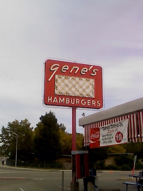 This sign of Gene’s Hamburgers has special memories of grammar school days with clothes shopping trips to the “big city” of Redding, California. We lived in the country between two tiny towns with few people about 20 miles south. My parents were frugal, pragmatic people. We rarely ate meals outside our home. We raised our own beef and had a large garden; the logic was why pay for food when we have plenty at home?
